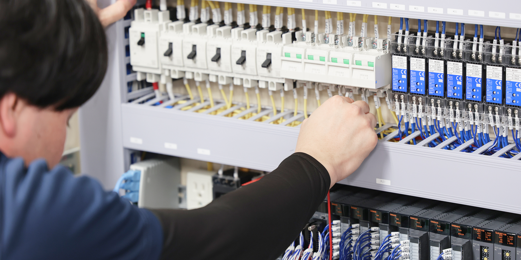 制御部では、当社の事業の要となる制御盤の設計・製作、および関連する電気工事を行います。業務は大きく設計と組み立てに分かれます。